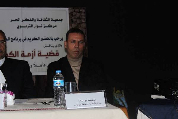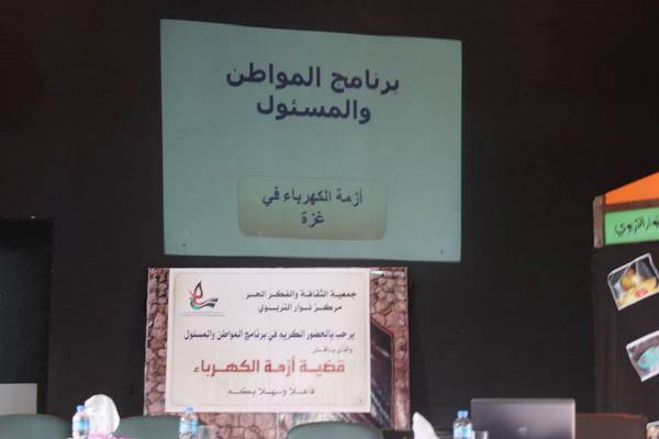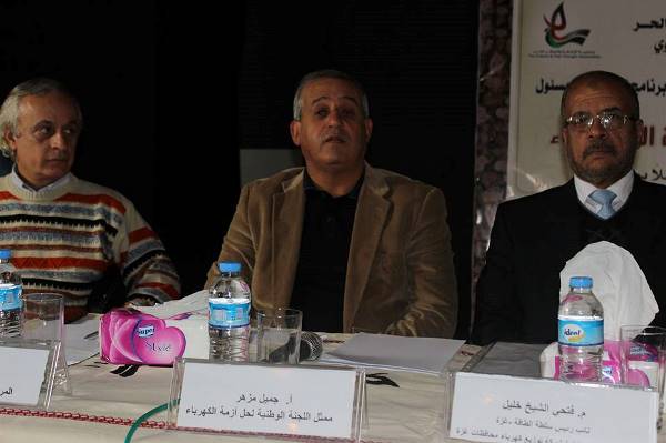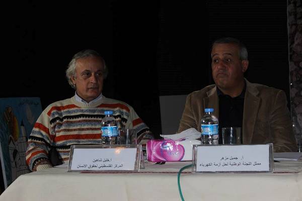 وفي مداخلة باسم المركز الفلسطيني لحقوق الإنسان أشار خليل شاهين إلى أن الكهرباء حق أساسي للمواطن كغيره من الحقوق التي تقع على عاتق السلطة الوطنية الفلسطينية ،متمماً "الانقسام الفلسطيني هو السبب في الأزمات التي يعيشها شعبنا وهو السبب في عدم التوصل إلى حلول عاجلة أو استراتيجية لأزماتنا".