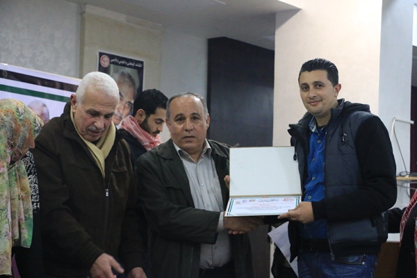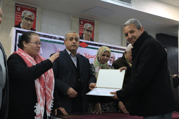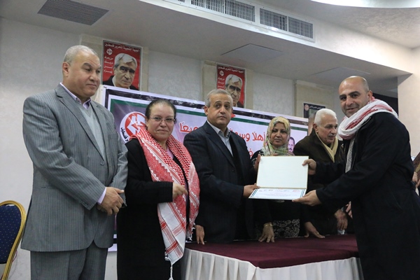 وفي ختام الحفل، كرمت لجنة مكونة من الرفاق ( جميل مزهر، أبو نضال طومان،سميرة موسى " أم الأمير"، اكتمال حمد، إبراهيم السلطان، أسامة الحاج أحمد ) ذوي أسرة الشهيد سامي ماضي، وكوكبة من جرحى الانتفاضة، بالإضافة إلى لجان المحافظات وأطر الجبهة النقابية والنسوية والشبابية ولجنة الأسرى على جهودها في تنظيم فعاليات الجبهة والمشاركة بفعالياتها، فضلاً عن مجموعة من المؤسسات القريبة من الجبهة الزراعية، والصحية، والتنموية.