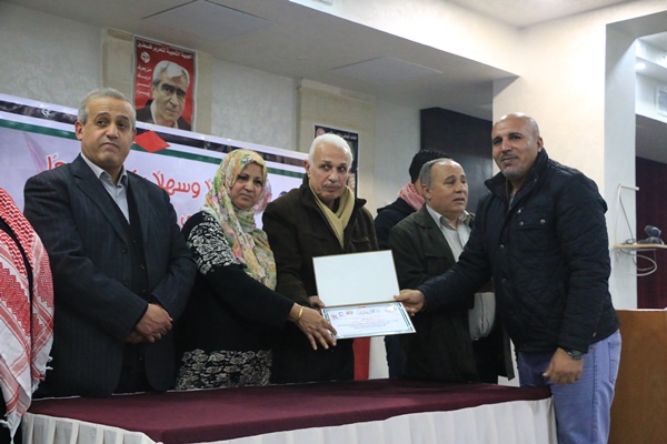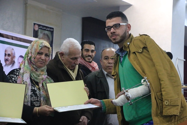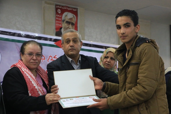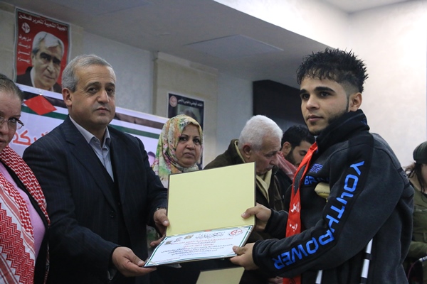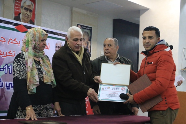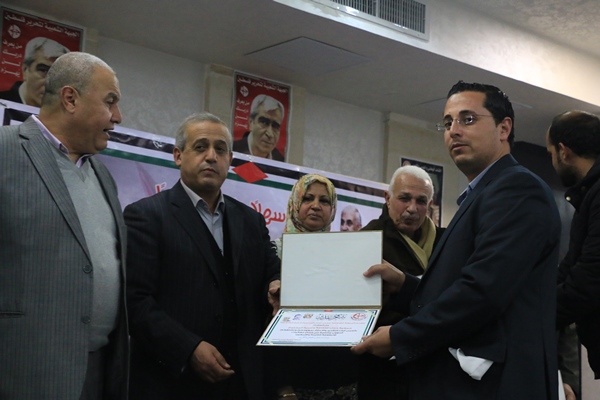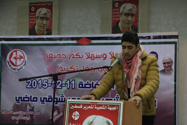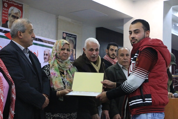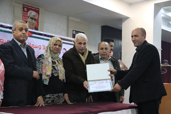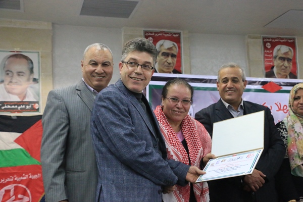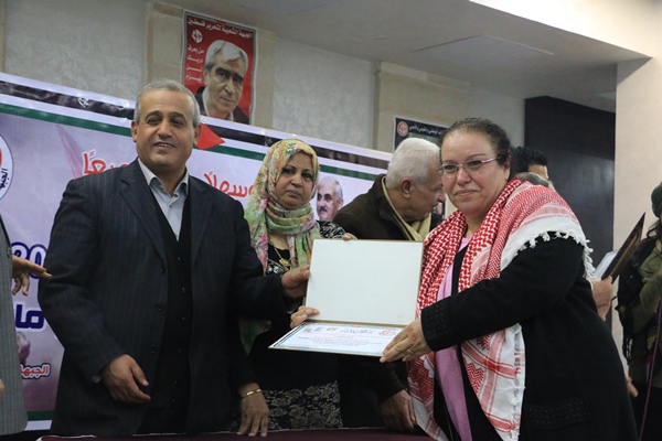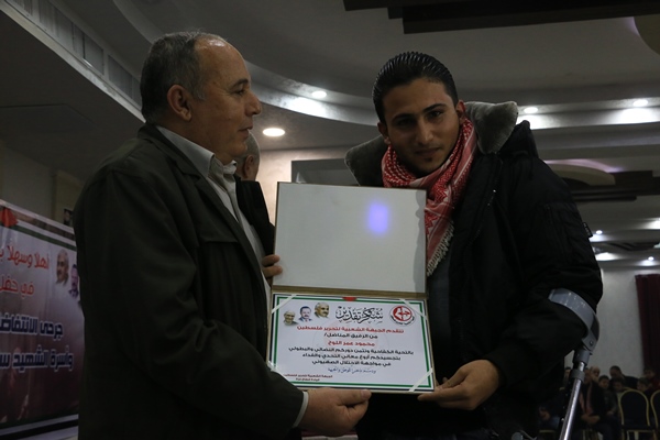 نظمت الجبهة الشعبية لتحرير فلسطين أمس الأربعاء حفل تكريم لكوكبة من جرحى الانتفاضة الذين أصيبوا في المواجهات مع الاحتلال على مواقع التماس، ولذوي الشهيد القائد سامي شوقي ماضي.