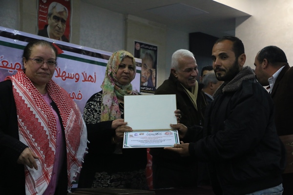 وحضر الحفل عدد كبير من قيادات وكوادر وأعضاء الجبهة الشعبية وذوي الشهداء والأسرى والمصابين، تقدمهم أعضاء المكتب السياسي د.مريم أبو دقة، د.رباح مهنا، جميل مزهر، كايد الغول.