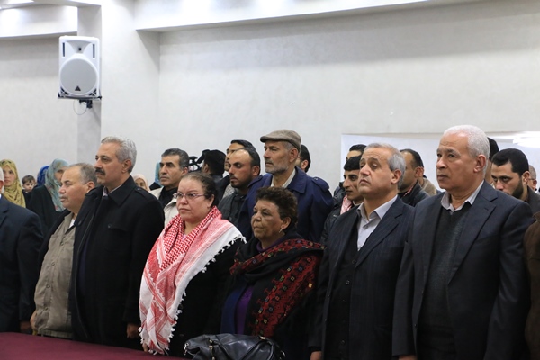 وافتتحت عريفة الحفل الرفيقة بيسان عاطف عودة الحفل مرحبة بالحضور، ومن ثم عُزف السلام الوطني الفلسطيني.