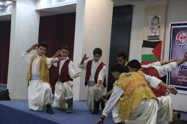 وتخلل الحفل عدة فقرات فنية وفلكلورية من أداء فرقة العصرية للفنون الشعبية، وفرقة الوسن التابعة لاتحاد الشباب التقدمي الفلسطيني. وفقرة شعرية للرفيق أنس شعبان حول الشهداء.