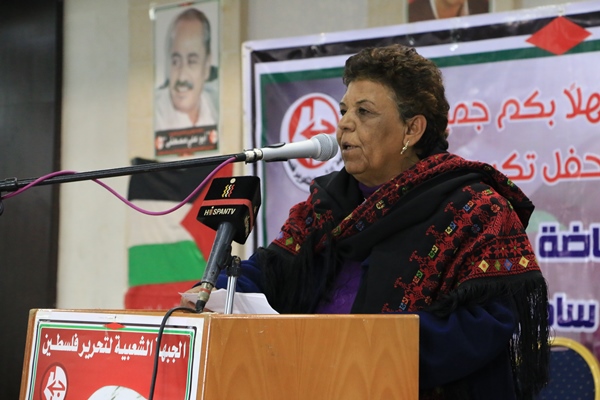 كما توجهت بالتحية لجرحانا البواسل، متمنية لهم الشفاء العاجل، وتوجهت بالتحية لأسيراتنا وأسرانا البواسل وفي مقدمتهم القائد الأمين العام الرفيق أحمد سعدات والمناضلة خالدة جرار ولجميع الأسرى.