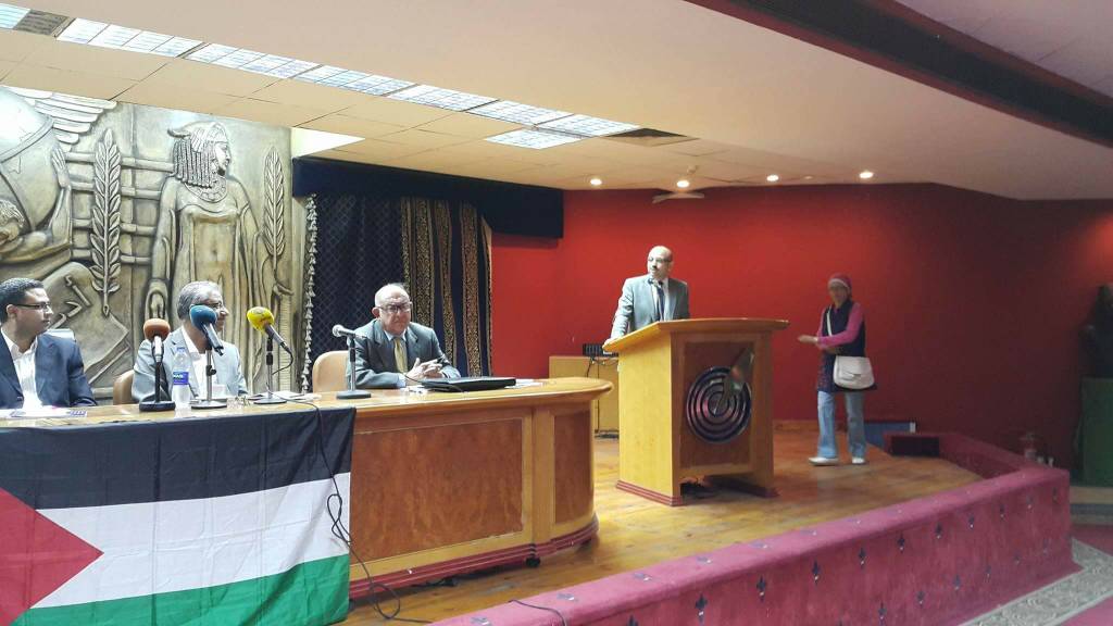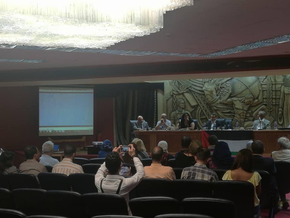 وعقدت الندوة التي تأتي في إطار التضامن مع إضراب الاسرى الفلسطينينين وإحياء الذكر69 للنكبة، وبمشاركة حاتم زكريا سكرتير عام نقابة الصحفيين، ومحمد سعد عبد الحفيظ عضو مجلس النقابة ومحمد عصمت سيف الدولة، المحلل السياسى، وعبد القادر ياسين المفكر المؤرخ الفلسطينى، والدكتور خالد سعيد الباحث المتخصص فى الشأن الإسرائيلى، وخالد البلشى عضو مجلس نقابة الصحفيين السابق. والرفيقة بيسان عدوان عضو لجنة إسناد اضراب الاسرى وأحد كادرات الجبهة .