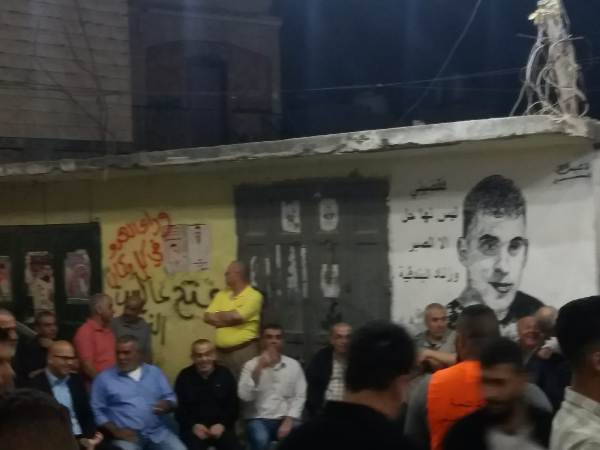 تجمع مساء اليوم الثلاثاء حشد كبير من قيادات وكوادر وأعضاء الجبهة الشعبية لتحرير فلسطين وممثلي القوى الوطنية والإسلامية والفعاليات الوطنية والمجتمعية والأهالي وبحضور المناضل محمود الأعرج والد الشهيد المثقف الثوري باسل الأعرج أمام منزل الرفيق الأسير المحرر بلال الصيفي في مخيم الدهيشة تضامناً معه ورفضاً واستنكاراً لاستهدافه من قبل أبواق الفتنة والمتآمرين على شعبنا.