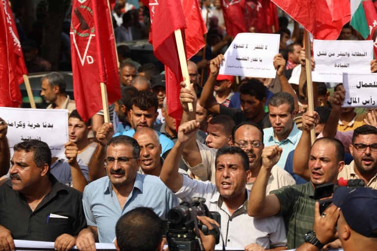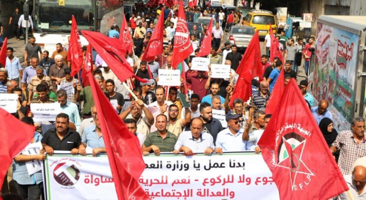نظمت جبهة العمل النقابي التقدمية "الإطار العمالي للجبهة الشعبية لتحرير فلسطين"، بالشراكة مع كتلة الوحدة العمالية مسيرةً عمالية احتجاجاً على عدم قيام الحكومة بالتزاماتها وتحمل مسؤولياتها الوطنية تجاه عموم شعبنا الفلسطيني، ورفضاً لإجراءاتها تجاه قطاع غزة، وما آلت إليه الظروف التي يمر بها العمال والخريجين العاطلين.