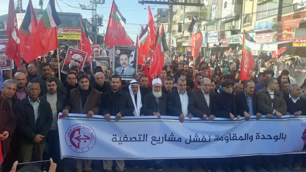 بمناسبة الذكرى الحادية والخمسين لانطلاقتها وتحت شعار ( بالوحدة والمقاومة نفشل مشاريع التصفية) نظمت الجبهة الشعبية لتحرير فلسطين عصر اليوم الثلاثاء مسيرات جماهيرية حاشدة في المحافظات الخمس شارك بها الآلاف من جماهير شعبنا تقدمهم قيادات وكادرات الجبهة الشعبية وممثلي القوى الوطنية والإسلامية وجمع غفير من مختلف الأجيال من الأطفال والنساء والرجال وكبار السن والمخاتير والأعيان والشخصيات الاعتبارية.