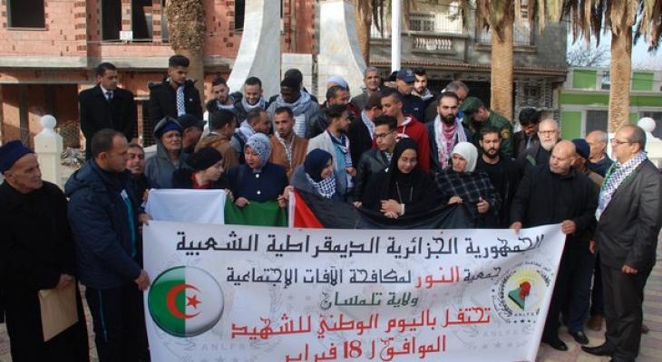 نظم الرفاق في الشبيبة الفلسطينية بولاية تلمسان بالجزائر بالتنسيق مع لجنة الأسرى للجبهة الشعبية في قطاع غزة احتفالاً في ذكرى يوم الشهيد الجزائري والذي يصادف يوم 18 / 2 من كل عام تخليدا لدماء مليون ونصف شهيد قضوا لأجل تحرير الجزائر من الاستعمار الفرنسي.