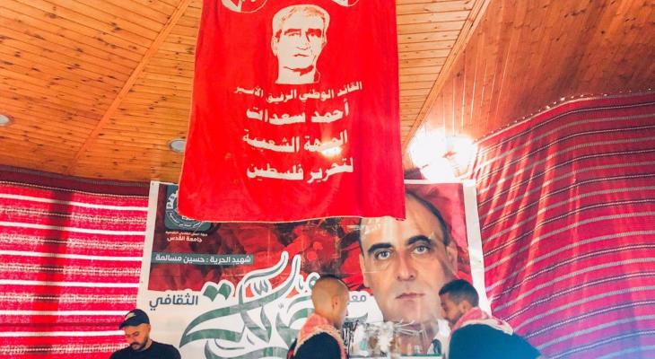وتزين المعرض بصور الرموز الوطنية الفلسطينية وعلى رأسهم صورة الرفيق الأمين العام للجبهة القائد أحمد سعدات، والأسيرات والأسرى، وأعلام فلسطين ورايات الجبهة وجبهة العمل الطلابي.