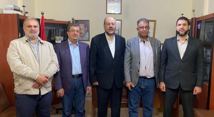 وضم الوفد رئيس دائرة العلاقات الوطنية في حركة المقاومة الإسلامية حماس في الخارج علي بركة وأعضاء الدائرة أيمن شناعة، زياد حسن والدكتور هاني الدالي.