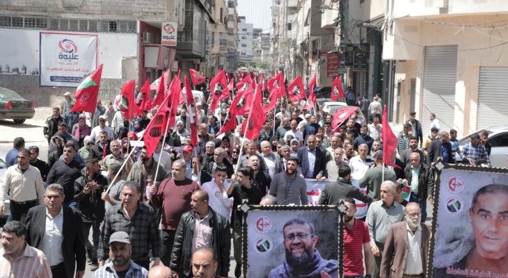 نظّمت جبهة العمل النقابي التقدميّة، الذراع العمالي للجبهة الشعبيّة لتحرير فلسطين، ظهر اليوم الخميس، مسيرةً عمّاليّةً حاشدةً انطلقت من ميدان السرايا في غزة، وصولًا إلى مقرّ وزارة العمل؛ وذلك على شرف يوم العمّال العالمي.