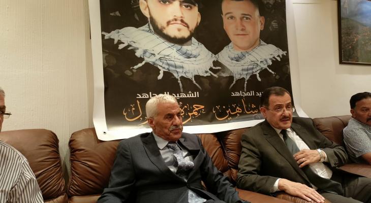 وتقدم الرفيق الأمين العام د. سعيد ذياب باسمه وباسم أعضاء المكتب السياسي واللجنة المركزية وعموم كوادر وأعضاء الحزب بالتهنئة من آل شاهين وآل مقبول في الوطن والشتات ومن الشعب الفلسطيني والشعوب العربية باستشهاد البطلين ” حمزة مقبول وخيري شاهين ” مؤكداً على ما تشكله هذه الحالة المتقدمة في المواجهة والصمود.
