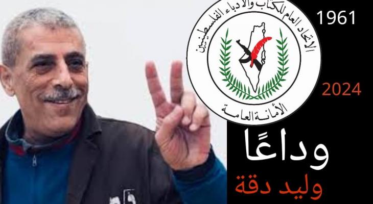 ينعى الاتحاد العام للكتّاب والأدباء الفلسطينيين الأديب المناضل الأسير وليد دقة الذي استشهد اليوم الأحد في معتقل "آساف هروفيه" بعد مسيرة طويلة من النضال الوطني ختمها بسنوات اعتقال واجه فيها وحشية السجان، والأمراض الناجمة من الإهمال الطبي.