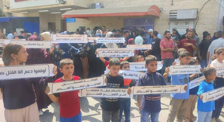 وتقدّم المشهد عشرات الأطفال بوجوههم البريئة وصرخاتهم العفوية يُلوّحون بلافتات كُتبت بدموعهم وعذاباتهم وبطفولتهم البريئة، وإلى جانبهم الأمهات والنساء اللواتي جسّدن صمود غزة بأصواتهن ودموعهن، ليؤكدوا للعالم أنّ الطفولة والبراءة لم تسلم من نيران العدوان، وأن غزة تُرسل رسالتها من أفواه صغارها: كفى قتلاً وتجويعاً وحصاراً.