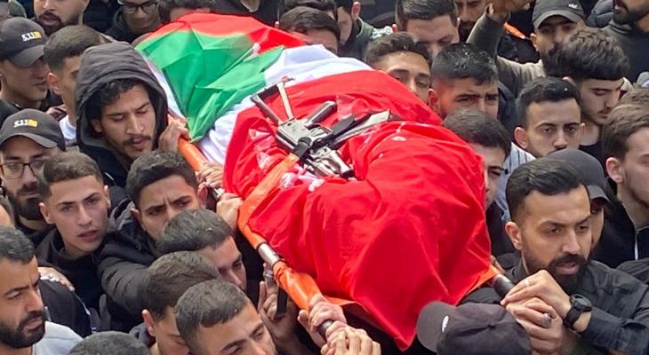 وبعد إلقاء نظرة الوداع الأخيرة، ودّعه ذووُه ورفاقه، لتنطلق الجنازة في شوارع المخيم، تتقدّمها صور الشهيد وأعلام فلسطين ورايات الجبهة وفصائل المقاومة الفلسطينية واللبنانية.