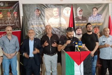 "الشعبية" و"الجهاد" تقيمان مجلس عزاء وتبريكات لشهداء معركة "ثأر الأحرار" في سوريا 20 مايو 2023 أقيم مجلس لتقبل التعازي والتبريكات بشهداء معركة ثأر الأحرار، اليوم السبت، في مخيم البداوي بمكتب الجبهة الشعبية لتحرير فلسطين قاعه الشهيد نبيل السعيد، وذلك بدعوة من حركة الجهاد الإسلامي والجبهة الشعبية
