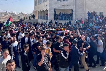 تشييع جثمان الشهيد عايد أبو حرب بمخيم نور شمس في طولكرم